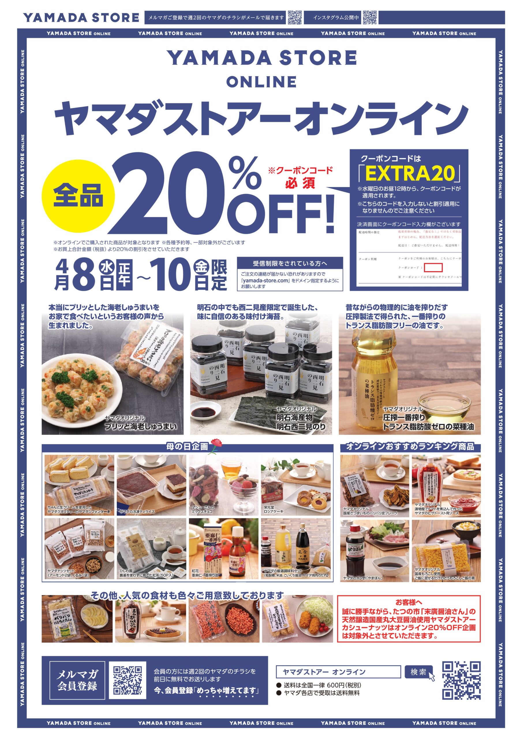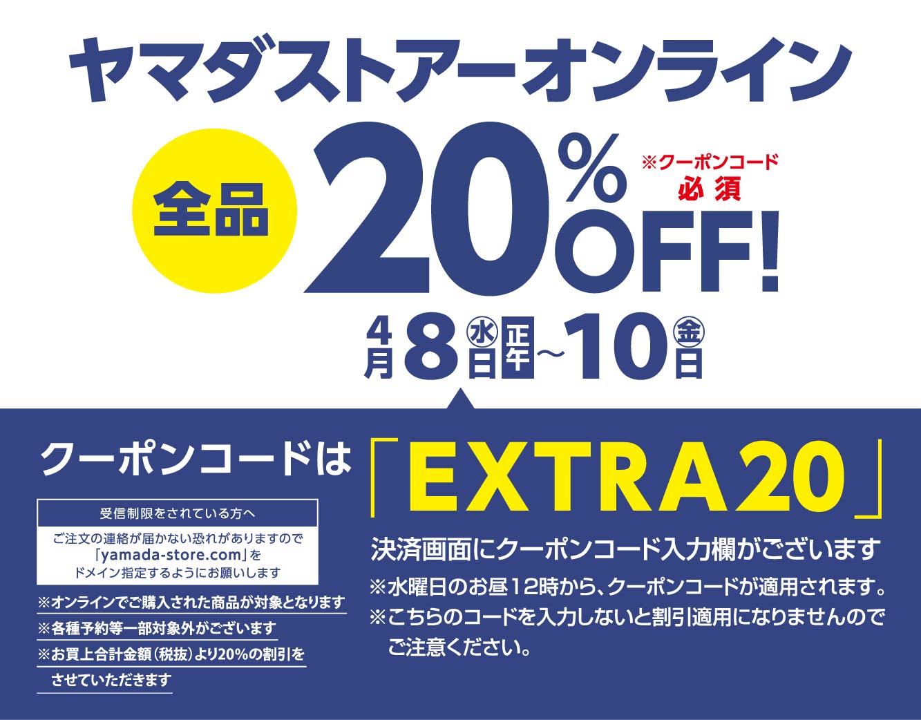 4月8日(水)ヤマダストアーオンライン20%OFFのお知らせ