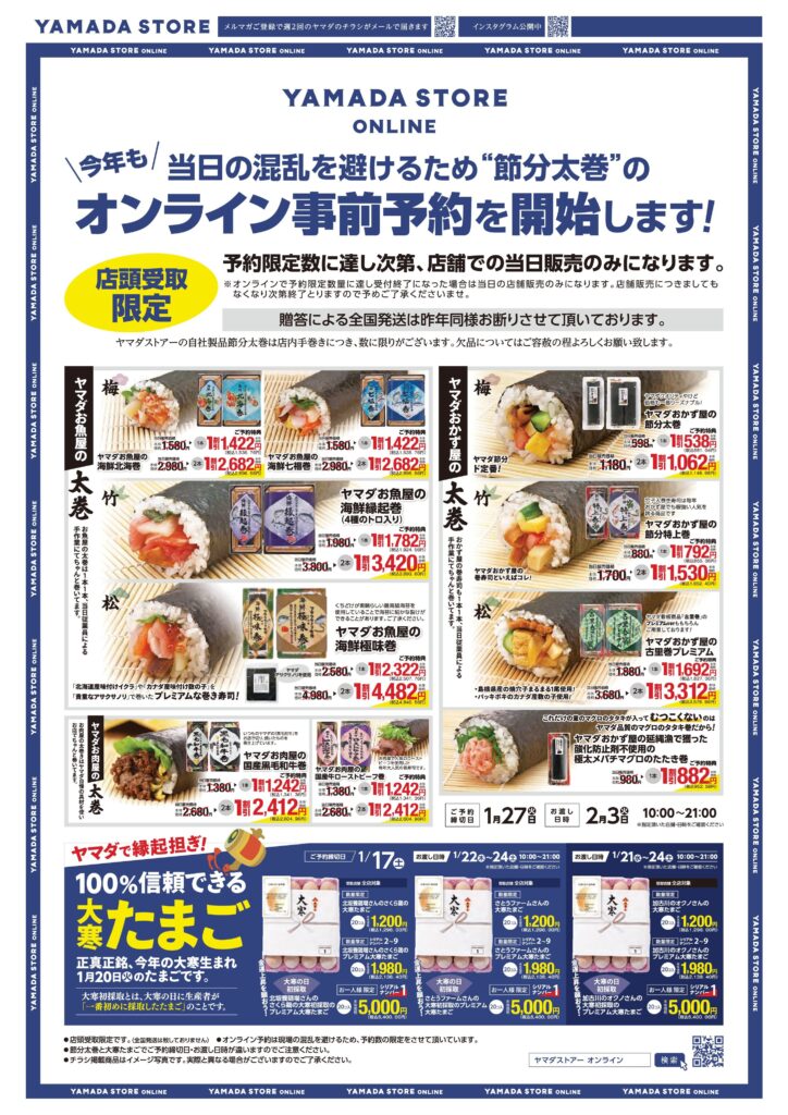 ヤマダストアーオンラインより節分太巻・大寒たまご予約受付開始!