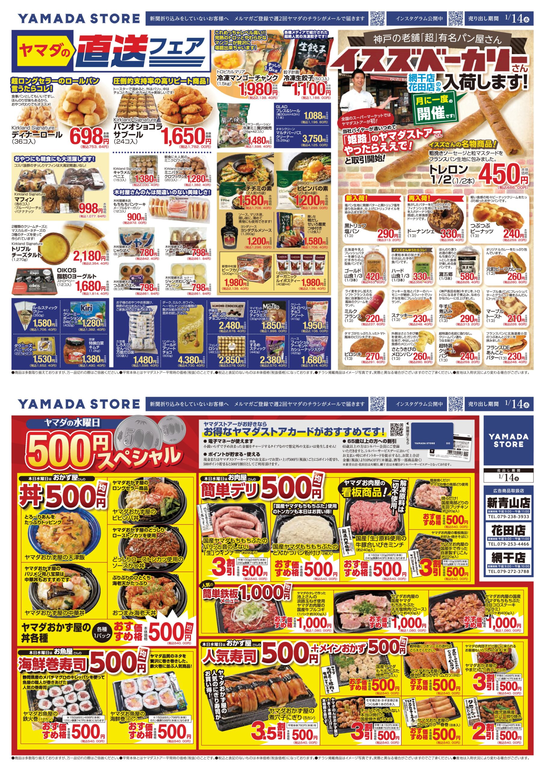 1月14日(水)新青山店・花田店・網干店限定イスズベーカリー&直送フェアチラシのご案内
